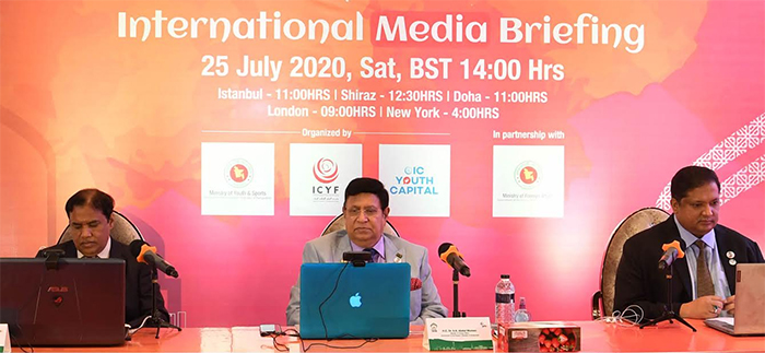 State Minister for Youth and Sports Zahid Ahsan Russel and YICF President Taha Ayhan also spoke at the briefing moderated by Amel Ouchenam.