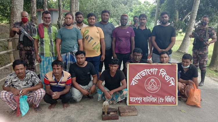 ঝিনাইদহের মহেশপুর সীমান্ত দিয়ে অবৈধভাবে ভারতে যাওয়ার সময় ১৫ জনকে আটক করেছে বিজিবি।