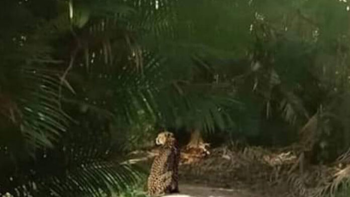 শনিবার (১০ সেপ্টেম্বর) বিকেলে চিতাবাঘটি বেতবাগানের ভিতর একটি সরু রাস্তায় বসে থাকা অবস্থায় দেখতে পান এলাকাবাসী। মুহূর্তের মধ্যে ওই চিতাবাঘের ছবি সামাজিক যোগাযোগ মাধ্যম ফেসবুকে ছড়িয়ে পড়ে। এ ঘটনায় ওই এলাকায় আতংক বিরাজ করছে।