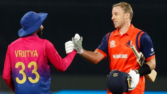 শেষ পর্যন্ত ১ বল হাতে রেখে তারা ৩ উইকেটের জয় নিশ্চিত করে। ডাচদের হয়ে ম্যাক্স ও দাউদ সর্বোচ্চ ২৩ রান করেন। ১৮ বলে তিনটি চারের সঙ্গে একটি ছক্কার মার। এছাড়া কলিন অ্যাকার ১৭ ও স্কট এডওয়ার্ডস ১৬ রান করেন।