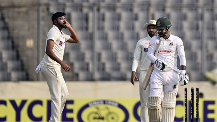 মিরপুর শেরে বাংলা জাতীয় স্টেডিয়ামে শনিবার তৃতীয় দিনের শেষ সেশনে ২৩১ রানে থামে বাংলাদেশের দ্বিতীয় ইনিংস। প্রথম ইনিংসে বাংলাদেশের ২২৭ রানের বিপরীতে ভারত করেছিল ৩১৪ রান।